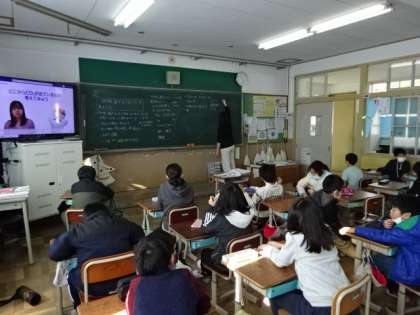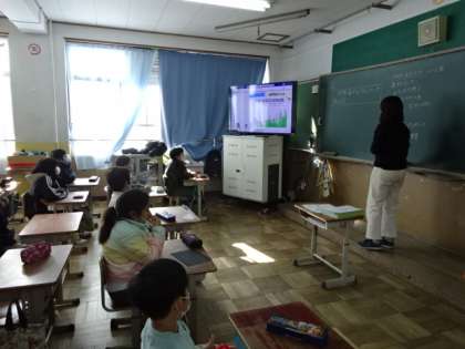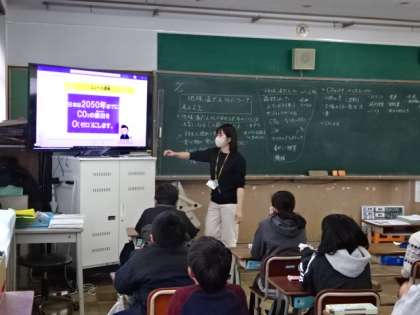 4年生は,この冬休みにエコライフチャレンジに取り組みます。今日は,地球温暖化についての問題をみんなで考えました。今の自分の生活を見直し,もっと地球環境にやさしい生活ができないか考え,これから実践していきます。