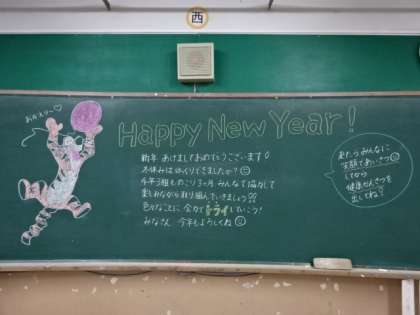 担任の先生の思いが詰まったみんなへのメッセージやイラストがたくさんありました。3学期はとても短いですが,次の学年につながる大事な時でもあります。クラスでもしっかりと目標をもつことができたようです。