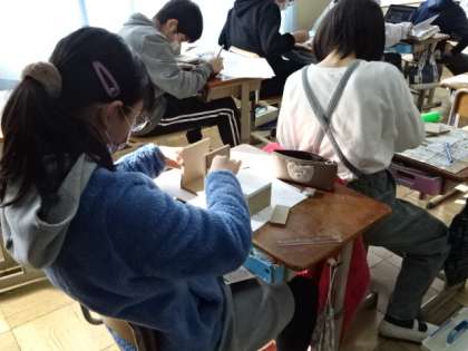 卒業制作に取り掛かっています。デザインを見ていると,卒業にまつわるイラストや言葉でデザインがされています。思い出に残る作品になるよう,丁寧に取り組んでいます。