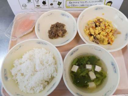 菜の花のすまし汁はいつもより濃いめの出汁を使用しており,うま味をしっかり味わうことができました。今日もおいしい給食ごちそうさまでした!