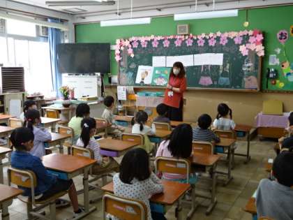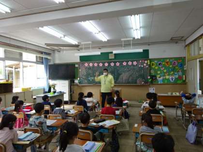 1年生も担任の先生と一緒に頑張っていました。早く学校生活に慣れようと,一生懸命に先生のお話を聞く姿がありました。明日も元気に登校してきてくださいね。