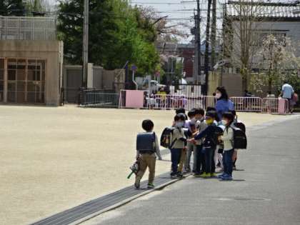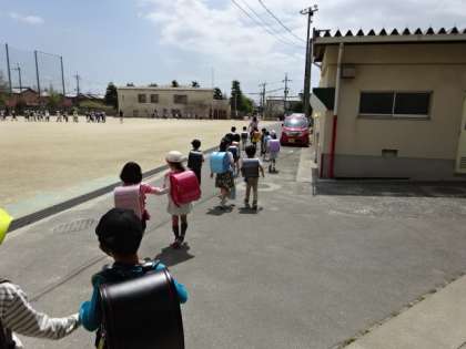 1年生は,教職員が付き添う中,コース別にみんなで下校しています。自分で安全に気をつけて下校できるように,練習しています。気をつけて帰って,そして,また明日,安全に気をつけて登校してくるのを待っています。