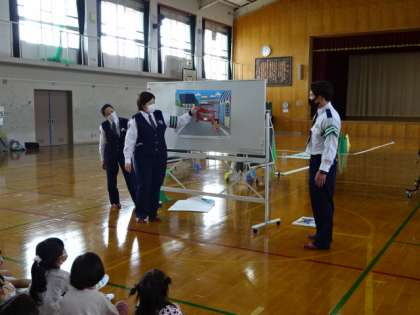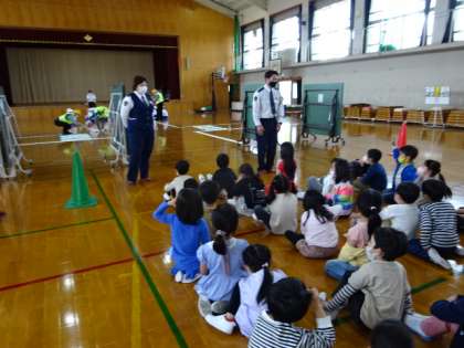 北警察署の方々に来ていただき,交通安全教室を開催しました。今集団で下校している1年生も,いよいよ自分たちの力で下校をしていきます。今回学習したことを守って,これからも安全に登下校できるようにしたいです。