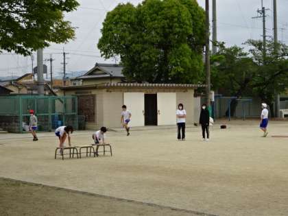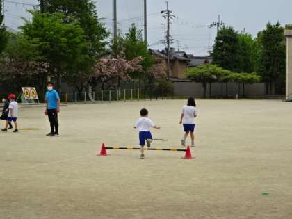 サーキットトレーニングでいろいろな動きを身につけます。跳び越えたり,ジャンプしたりして,たっぷりと体を動かしました。