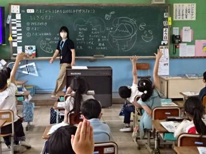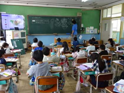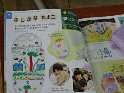 「ふしぎなたまご」の学習です。卵からとび出すものは何か,思い思いに考えて絵に表していきます。みんな楽しい世界を思い描いているので,どんな作品が出来上がるのか,今から楽しみです。