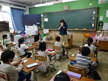 1年生はあさがおを育てます。今日は,先生から一人一人にあさがおの種が配られ,じっくりと観察をしました。