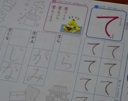 ひらがなの学習が少しずつ進んでいます。今日は「て」を学習しました。お家での宿題でも,丁寧に練習できるといいですね。