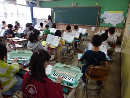 音楽の時間の様子です。今日は,リコーダーではなく鍵盤ハーモニカを使って演奏です。久しぶりに鍵盤ハーモニカの音色を楽しみました。