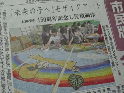 創立150周年記念事業の一つ,モザイクアート制作活動の様子が新聞に掲載されました。