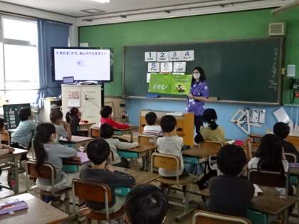 今日はALTの先生と一緒に学習です。英語で絵本の読み聞かせをしていただきました。みんなもよく知るお話を英語で聞きましたが,みんな楽しくお話を聞くことができました。