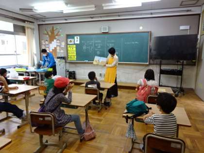 今日から3日間,のほほんクラブの方々による朝の読み聞かせがあります。今日は1組と1・2年の教室で読み聞かせをしていただきました。