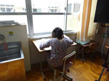 午前中は,基本,個別の学習に取り組んでいます。集中して学習に取り組んでいます。4月に入学してきた1年生も,上級生が学習に取り組む雰囲気を感じているようで,同じように頑張って学習に取り組んでいます。
