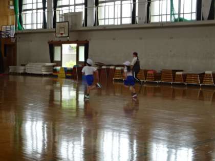 体力テストで,シャトルランに取り組みました。友だちの励ましを受けて,自分の記録に挑戦していました。