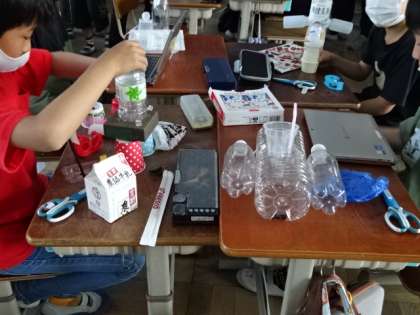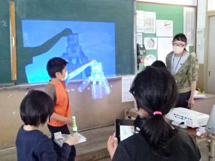 『光とかげから生まれる形』の学習です。友だちと自分のつくった影の形や色の似ているところや違うところ,面白さについて,みんなで交流しました。