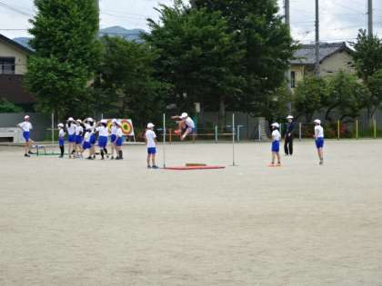 走り高跳びに挑戦している6年生。暑い中でしたが,友だちと声を掛け合って記録に挑戦していました。