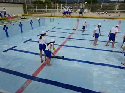 来週6日(月)から始まる水泳学習に向けて,6年生がプール掃除です。毎年6年生が掃除を担当していますが,いつも頑張ってきれいにしてくれています。今年の6年生も大活躍。いつも本当に頼もしい6年生です。上賀茂小学校の子たちの素敵な姿が,しっかりと引き継がれています。おかげさまで,来週から無事,水泳学習がスタートできます。ありがとう!6年生の皆さん!!