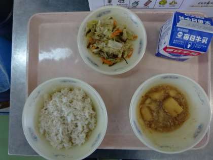 今日の献立は,「麦ごはん・牛乳・じゃがいものそぼろ煮・ごま酢煮」でした。ごま酢煮は,酢の味がまろやかで野菜もたくさんあって,美味しくいただくことができました。