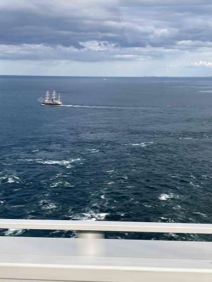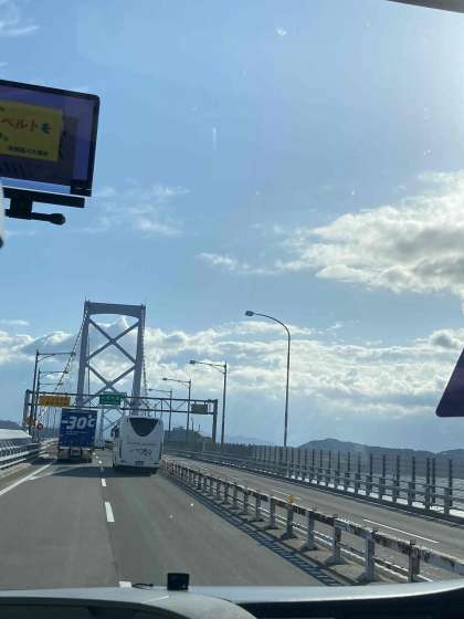 大鳴門海峡大橋を渡り、四国の徳島に入りました。明日行く大塚国際美術館も見えました。予定通りホテルにもうすぐ到着します。