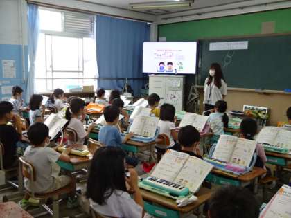 鍵盤ハーモニカの練習です。タンギングを意識して演奏できるように,みんなで確かめています。家で練習する際も,タンギングに気をつけて演奏するようにしたいです。