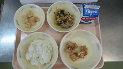 今日はごはんによく合う「鶏肉のこはくあげ」ということもあり,みんなしっかり食べてくれていました。