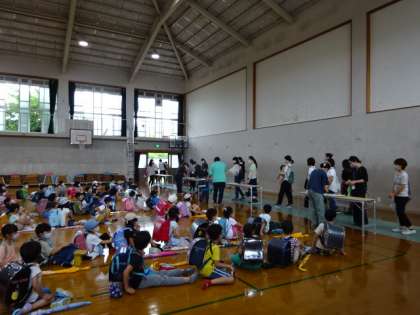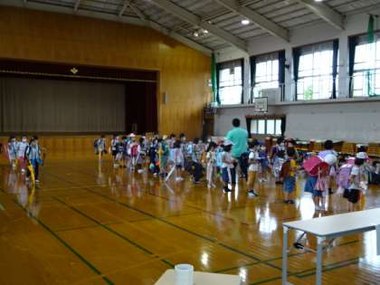 全校で実施を予定していましたが,天候不良のため,1年生のみ,体育館で引き渡し訓練を実施しました。いざという時には,子どもたちの安全のため,ご家庭の方に引き渡しをしたうえで下校となります。引き続きご協力いただきますよう,よろしくお願いします。