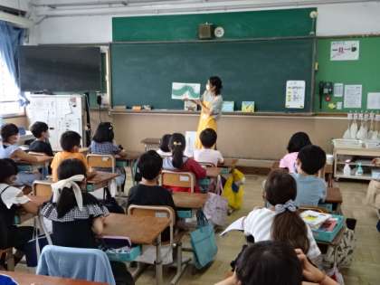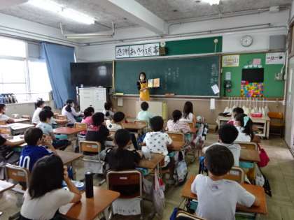 昨日に引き続き,今日は3年生と4年生の教室で読み聞かせをしていただきました。