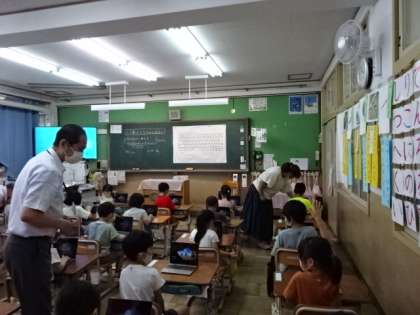 はじめってのタブレット端末を出しての学習。電源を入れ,パスワードを入力してログインし,最後はシャットダウンをするところまでを学習しました。