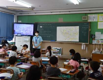 2年生は今日,町たんけんに出かけました。出発前にはルートや安全について確認です。町たんけんで発見したことは,教室に戻ってまとめていきます。