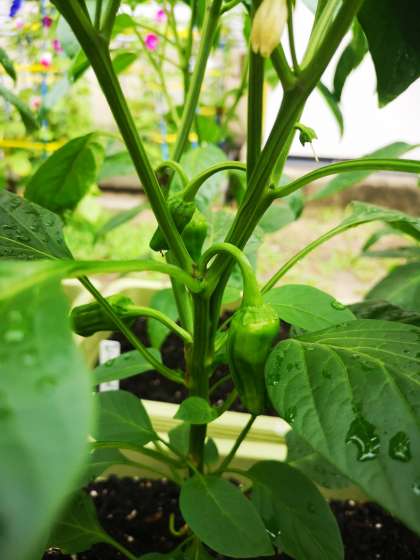 すっかり「ピーマン」になっているもの,獅子唐サイズのもの,さらに小さな赤ちゃんピーマンまで含めると大豊作の予感がします。