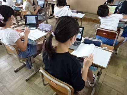 天気の変化について学習してきた5年生。今日はこれまでの学習をタブレット端末を使ってまとめていきました。