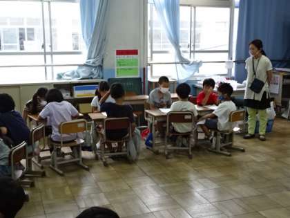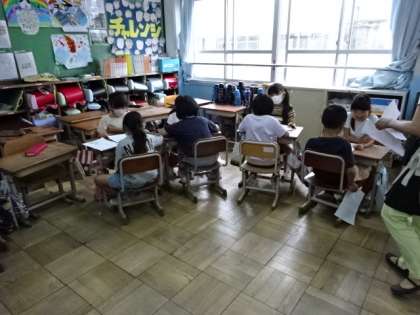 「メモをとるとき」の学習です。前回の授業で、伝えたいものについてメモにまとめましたが、今日は、そのメモをお互いに見て、良いところを見つけ合いました。