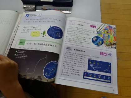 星の色や大きさについて学習しています。教室で学習したことを受けて、夏の夜空に浮かぶ星をじっくりと観察してみるのもいいですね。観察する際には、お家の人と安全に十分気をつけるようにしましょう。
