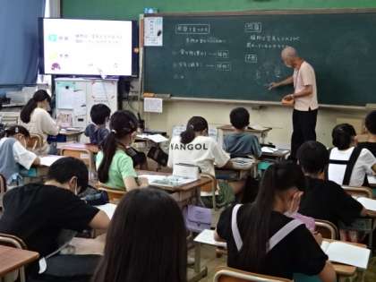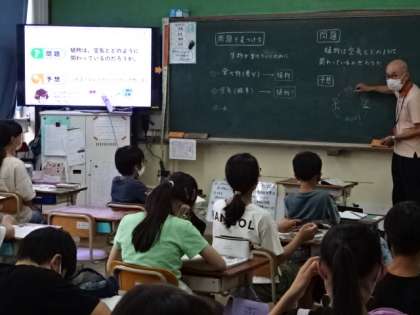 「生物どうしの関わり」についての学習です。植物は空気とどのように関わっているのかを考えました。