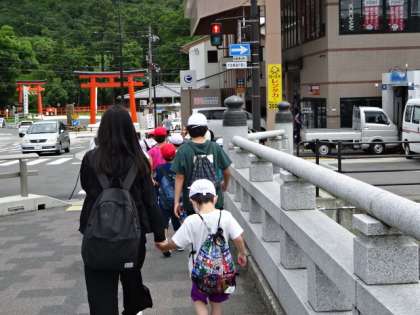 加茂川中学校までの道中も、暑い中で夏を体でしっかりと感じながら、安全に気をつけてみんなで行動することができました。