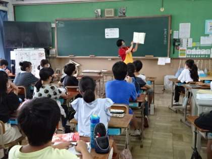 6年生の教室では、祇園祭にまつわるお話を聞かせていただきました。京都の夏を感じる読み聞かせでした。