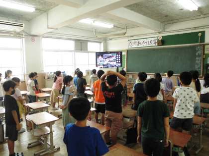 いよいよ今日から2学期がスタートし、学校に子ども達の元気な声が戻ってきました。2学期始業式は2年生が体育館に入り、他の学年はそれぞれの教室でオンラインを活用し画面越しで行いました。校長先生からは、「言葉のキャッチボール、対話」のお話がありました。互いを思いやる優しい気持ちをもって日々の生活を送ることで、心が通い合い、気持ちの良い言葉のキャッチボールができるのだと思います。上賀茂小学校の一人一人がさらに素敵な人になれるよう2学期も頑張っていきましょう。