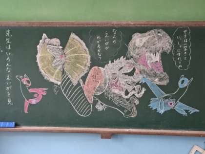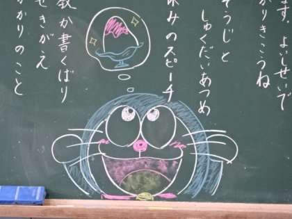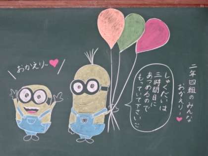 各クラスでも、友だち、そして先生と久しぶりの再会です。黒板には、担任の先生からのメッセージやイラストがかかれていて、登校してくるとみんな眺めていました。