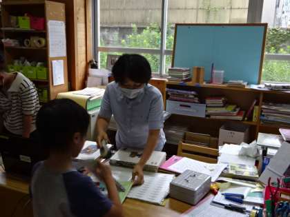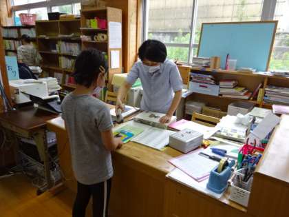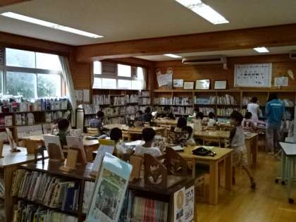 今日は4年生が図書館にやってきました。学校司書の先生と一緒に、読書の時間を楽しんでいました。