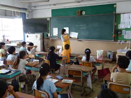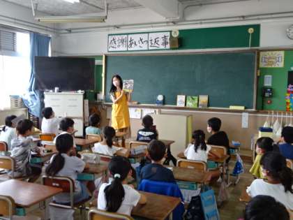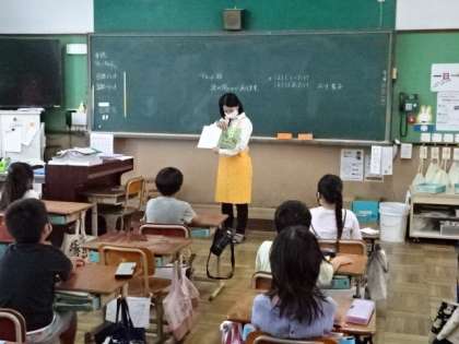 昨日に引き続いての、のほほんクラブの方々による朝の読み聞かせ。今日は3・4年生の教室で読み聞かせをしていただきました。