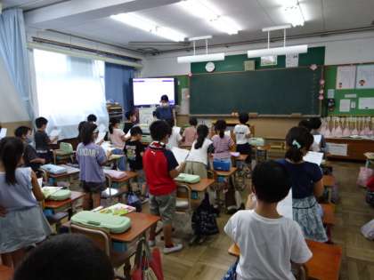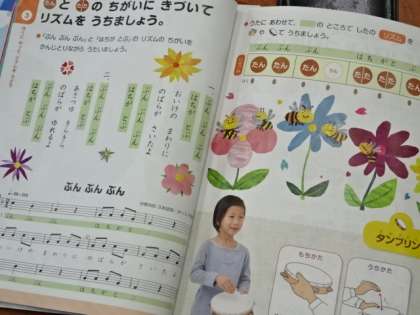 音楽の時間の様子です。時々、校歌も練習していますが、歌詞も覚えて歌えるようになってきている1年生。楽しく音楽の時間を過ごしていました。