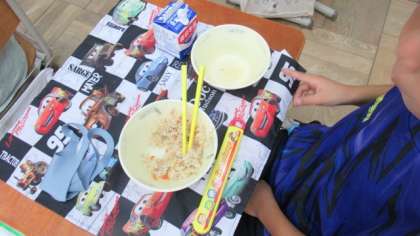 1年生の教室を見に行くと、たくさんおかわりしてモリモリ食べている子やいつもより早く食べ終わって読書や自由帳をしている子がたくさんいました。