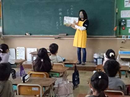 10月の朝の読み聞かせが今日から始まり、3・4年生の教室で読み聞かせをしていただきました。