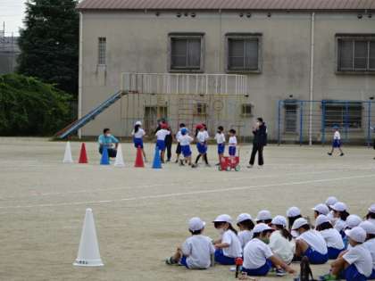 来週のスポーツフェスティバルが近づいてきました。運動場での練習も、確認の段階に入っています。1年生は2年生の声援を受けながら、個人走の練習に取り組んでいました。