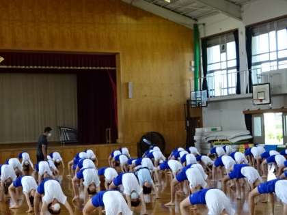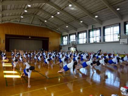 6年生のスポーツフェスティバルに向けての練習の様子です。最高学年らしく力強く、そして見ている人に感動を与えられるように表現しようと、練習にも熱が入っています。