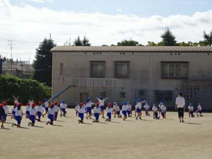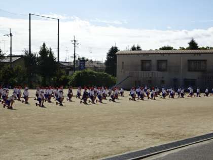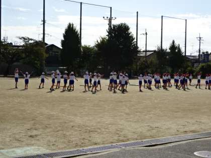 5年生は運動場で練習です。棒ひきの前には、みんなで表現運動に取り組みます。今日は陽射しが少しきつい中でしたが、集中して練習に取り組んでいました。