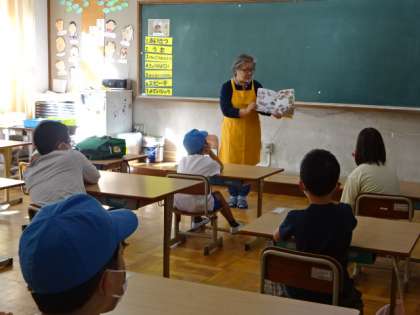 朝の読み聞かせも今日で3日目です。1組・1・2年生の教室にのほほんクラブの方々が来てくださいました。