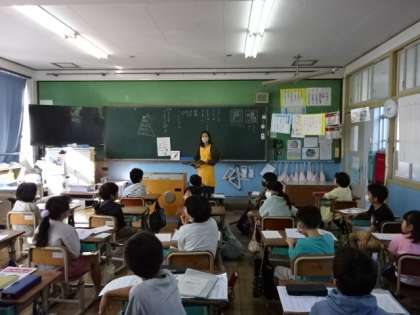 2年生の教室では、読んでくださる方の真ん前に来て、お話を楽しんで聞いていました。いつもありがとうございます。今後ともよろしくお願いします。