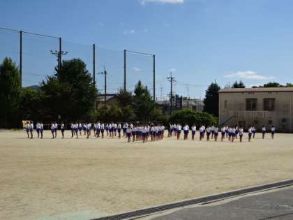 (写真は青空のもとで練習に取り組む6年生の様子です。明日も良い天気になることを願っています。)