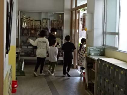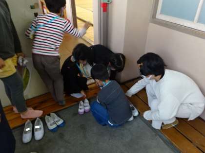 来年、1年生で入学してくる園児たちに、優しく気遣いながら接する5年生。来年は最高学年になることを意識しながら、交流しました。幼稚園の先生も5年生のお兄さんお姉さんらしい立派な姿に感心されていました。