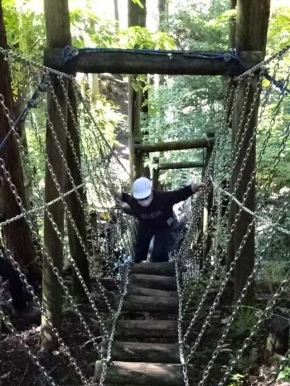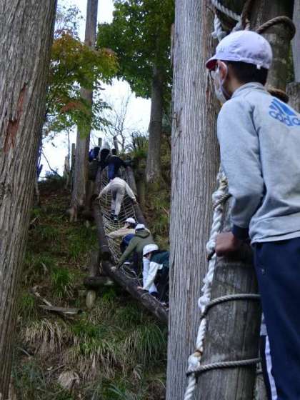 次々と急斜面を登ってくる6年生。お互いに声を掛け合いながら、無理のない範囲でチャレンジです。